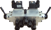 1、電磁換向閥  2、電磁換向閥手動(dòng)旋鈕  3、手動(dòng)轉(zhuǎn)閥1  4、集成塊